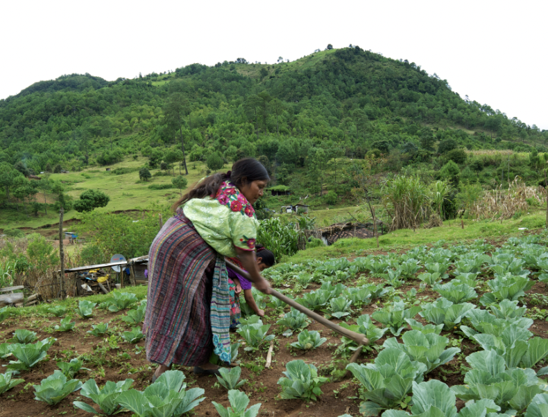 Mujer rural trabajando la tierra en Guatemala.